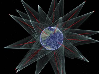 GPS卫星工作示意图 构成全球定位系统(GPS)世界卫星网的卫星 据英国《每日邮报...