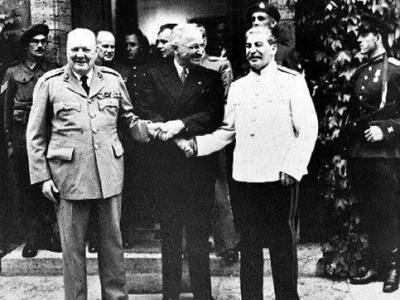 波茨坦会议期间的“三巨头”,从左至右:邱吉尔、杜鲁门、斯大林。 1945年8月6日...
