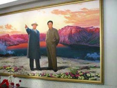 平壤一所小学内的金日成金正日父子肖像 明朗的朝阳从帘隙映入了洞口,李警卫小心...