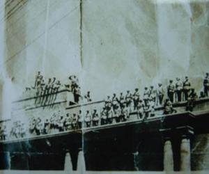 当年占领总统府时拍摄的照片(后排右起第七个为管玉泉,图片为管玉泉提供本报记者...