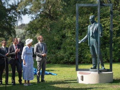 南京大屠杀保护难民 “丹麦英雄”辛德贝格(Bernhard Arp Sindberg)铜像揭幕玛格丽...