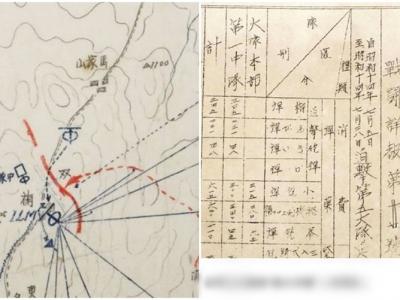 日本学者公开日军在中国发动毒气战的证据。日军用地图纪录作战情况。《战斗详报》纪...