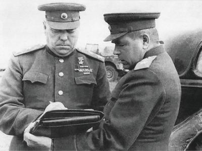 苏联元帅亚·米·瓦西列夫斯基和空军元帅费·雅·法拉列耶夫在...