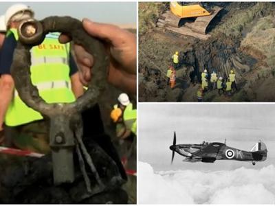 团队在泰晤士河口挖掘出该架二战飓风战斗机残骸。残骸包括一块...