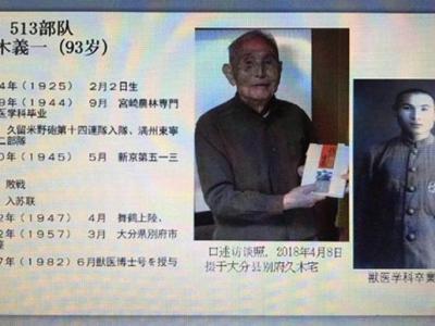 日本93岁老兵,战争期间曾在513部队服役。日军二战期间在中国...