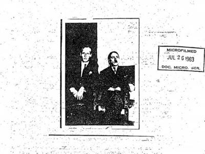 该间谍文件附有一张照片,显示相信是希特勒(右)及...