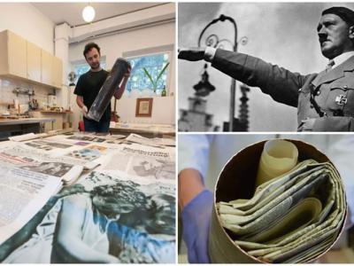 专家相信时间囊是纳粹党留给后代。 研究人员利用电锯将圆桶型的时间囊锯开。 ...