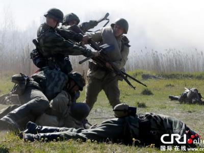 俄罗斯军事俱乐部成员还原战场庆祝战胜纳粹德军69周年 (蜘蛛网)据国际在...