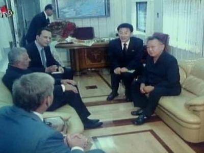 金正日(右一)多次出访都是坐火车 有指IL-62客机在试飞期间在空中爆炸。图为北...