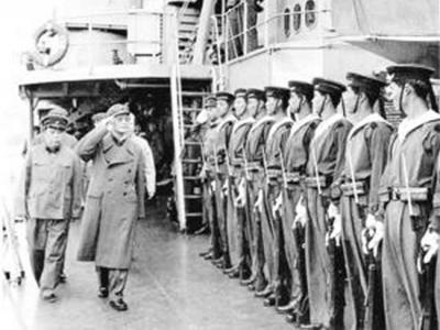 张爱萍检阅部队 重庆号巡洋舰 人民海军的创建者张爱萍上将,被称为“新中国海...