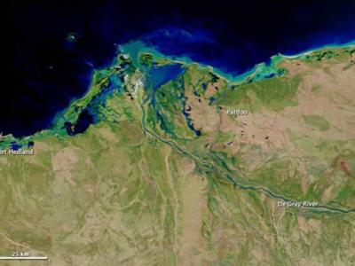 卫星照片展示澳大利亚德格雷河的洪水景象