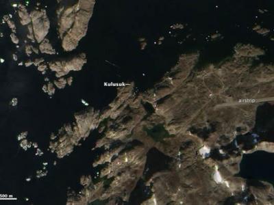 卫星照片展示格陵兰岛小镇Kulusuk的美丽