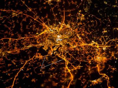 航拍照片展示比利时列日市的夜景 美国国家航空航天局地球观测站(NASA's Earth O...
