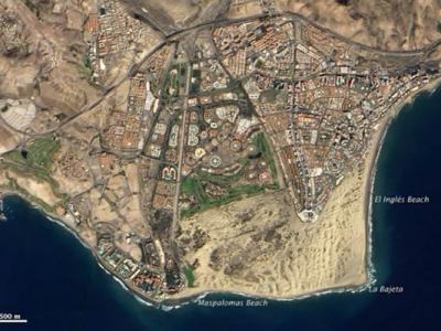 卫星照片展示西班牙大加那利岛的沙丘海滩