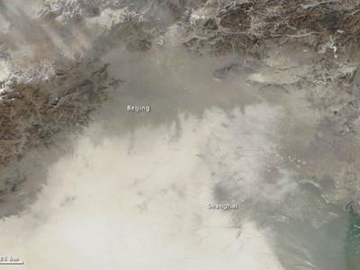 太空拍中国东北部地区上空阴霾密布,NASA在地图标注中出现了错误,将与北京邻近的...