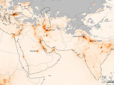 卫星测绘地图显示亚洲西南地区的污染状况
