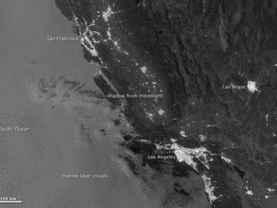 2012年9月27日,NASA的Suomi NPP卫星拍下了这幅照片,显示了加利福尼亚州海岸夜晚...