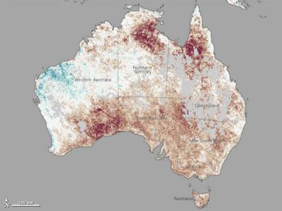 卫星测绘地图显示澳大利亚大陆2013年1月