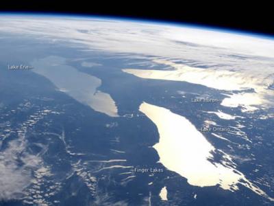 在这幅照片中,加拿大安大略湖(Lake Ontario)的整个表面(约18,960平方公里)都成为...