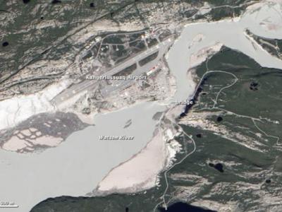 格陵兰岛康克鲁斯瓦格镇的洪水景象