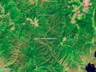 美国科罗拉多州黑松森林遭受松皮小蠹甲虫