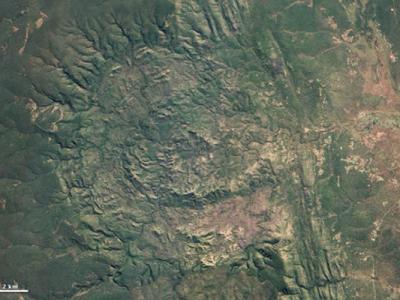 刚果卢伊济河陨石坑 美国宇航局地球观测站今日公布了一张卫星照片,展示了刚果卢...