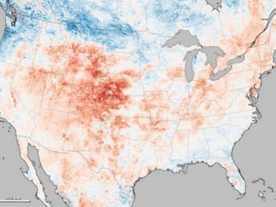 美国宇航局地球观测站今日公布了一张卫星测绘地图,展示了美国西部地区6月间的异...