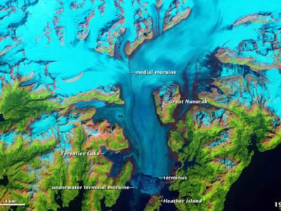 美国阿拉斯加州哥伦比亚冰川几十年来的撤退