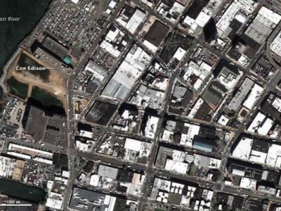 美国纽约市皇后区的新型环保白色屋顶 照片下面的曲线图是根据来自哥伦比亚大学...