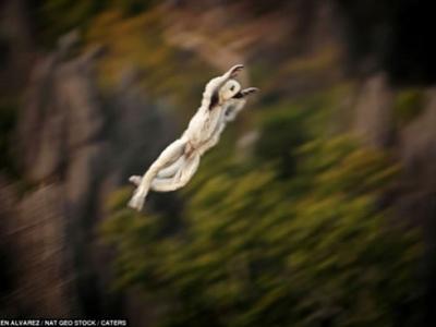 狐猴犹如杂技演员一样在锋利的石林尖顶间凌空跳跃 这片位于马达加斯加的石林约...