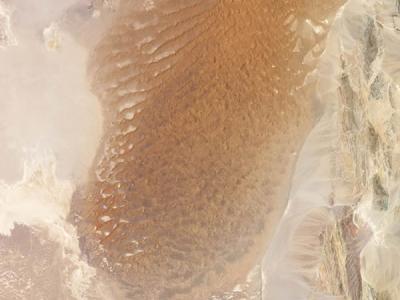 自然色照片;卢特沙漠在其中5年中均达到了全球最高温度 2005年的最高地表温度...