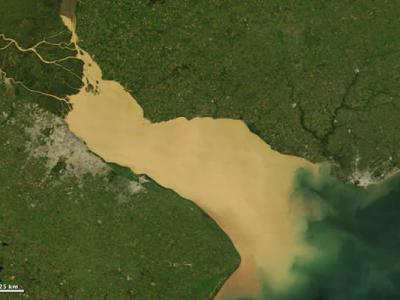 南美洲拉普拉塔河中面积巨大的沉积物