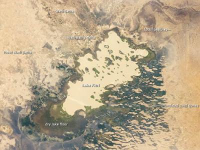 非洲乍得菲特里湖 美国宇航局地球观测站今日公布了一张卫星照片,展示了非洲乍得...