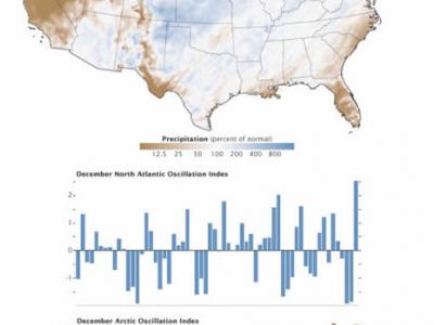 美国2011年12月雨雪量 美国宇航局地球观测站今日公布了一张测绘地图,展示了201...