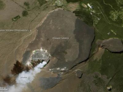 基拉韦厄火山口和夏威夷火山观测站的特写图 拉韦厄峰(Mauna Ulu)和Pu’u ’O’...