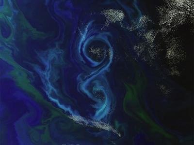 福克兰群岛东部海域惊现“8”字图案海藻群 这张航拍照片是2011年12月2日拍摄的福...