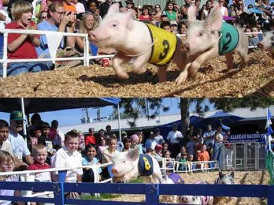 美国举行小猪快跑 2012年1月20日,美国马特诺莫县,小猪竞速赛上,小猪们在60英...
