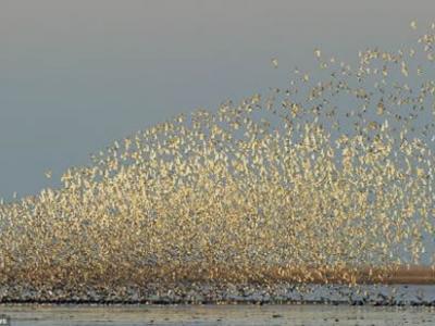 诺福克沃什湾,成千上万的涉禽在空中飞翔,如此景象不免让人联想到非洲大草原。每...