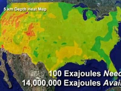 美国全境潜在地热资源热影像图 增强地热能系统(EGS)将通过一个钻孔竖井进入地...