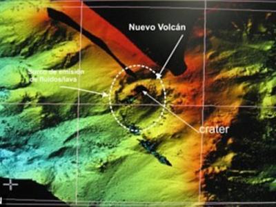 这张海底地形图上可以看到正在喷发的火山位置 远眺加纳利群岛上的火山,事实上...
