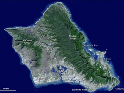 太空拍美国夏威夷瓦胡岛美丽景色 美国宇航局地球观测站今日公布了一张卫星照片,...