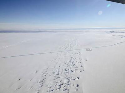 2011年10月,美国宇航局“冰桥计划”在南极西部松岛冰川发现一道巨型冰裂隙 借助...