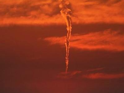 照片中呈现的是撒哈拉沙漠壮丽日落背景下,一处旋转风流加速形成,但事实上这并非...