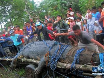 菲律宾居民活捉6.4米长巨型鳄鱼