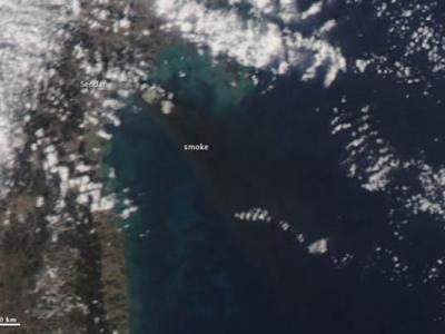 美国卫星获取日本强震引发的海啸和大火的