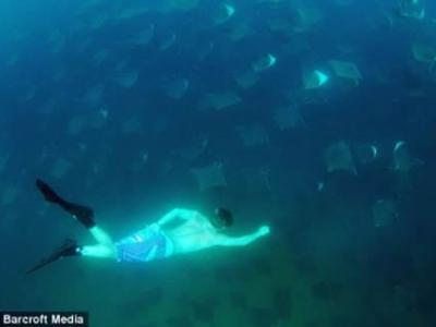 潜泳者与数百只蝠鲼水下共舞