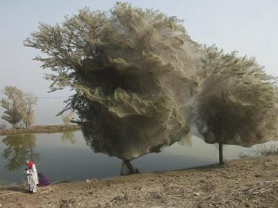 数百万蜘蛛爬上树做窝,形成了这种“怪树”奇观 据英国《每日邮报》3月26日报道...