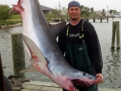 140公斤灰鲭鲨“自投罗网” 跳上渔船