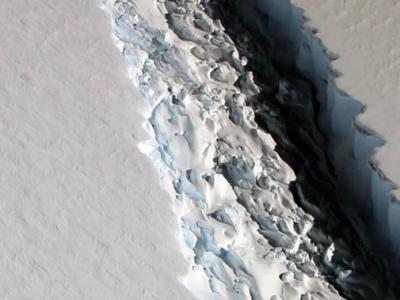 无人机拍下了格陵兰冰盖中的湖泊快速裂开