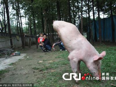 河南"猪坚强"倒立行走